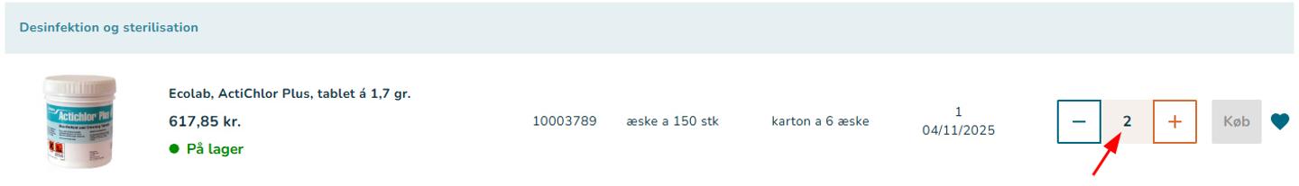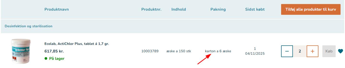 I din favoritliste kan du nu se, hvor mange enheder du skal bestille for at modtage fx en hel karton eller palle. Det gør det nemmere at vælge den rigtige mængde, hvis du ønsker at købe et stort parti og planlægge dine bestillinger mere præcist.