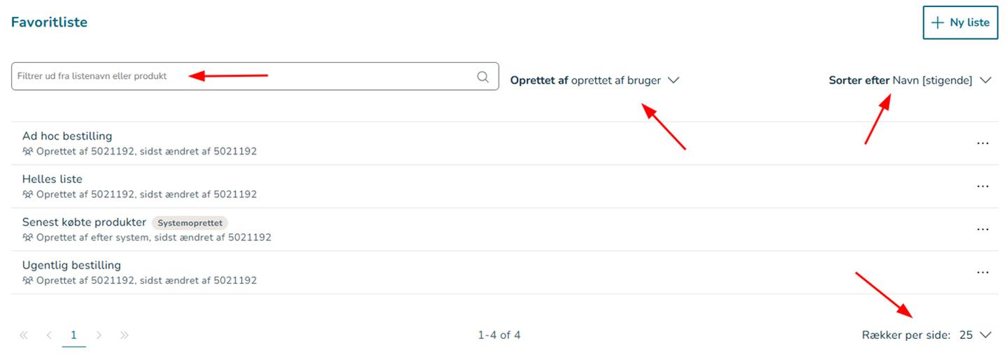 ✓ Opret flere favoritlister – fx til forskellige bestillinger eller brugere