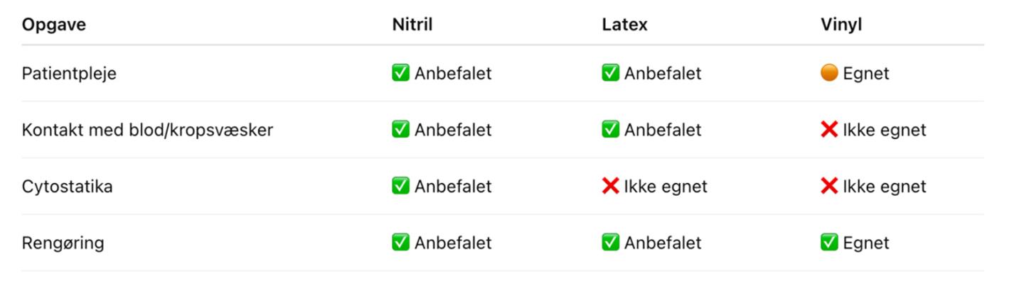 Hvornår bør jeg bruge hvilken handske?